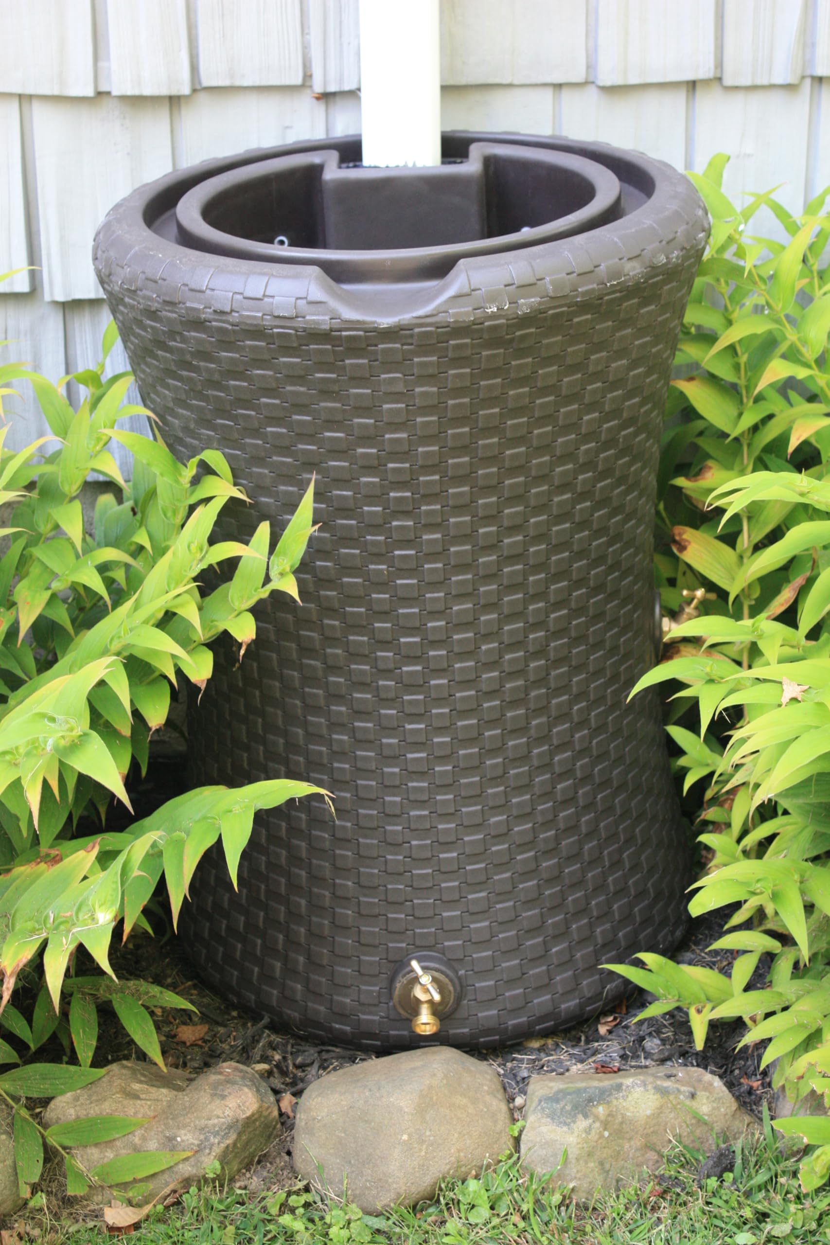 - 50 Gallon capacity rain barrel and 4 inch planter top