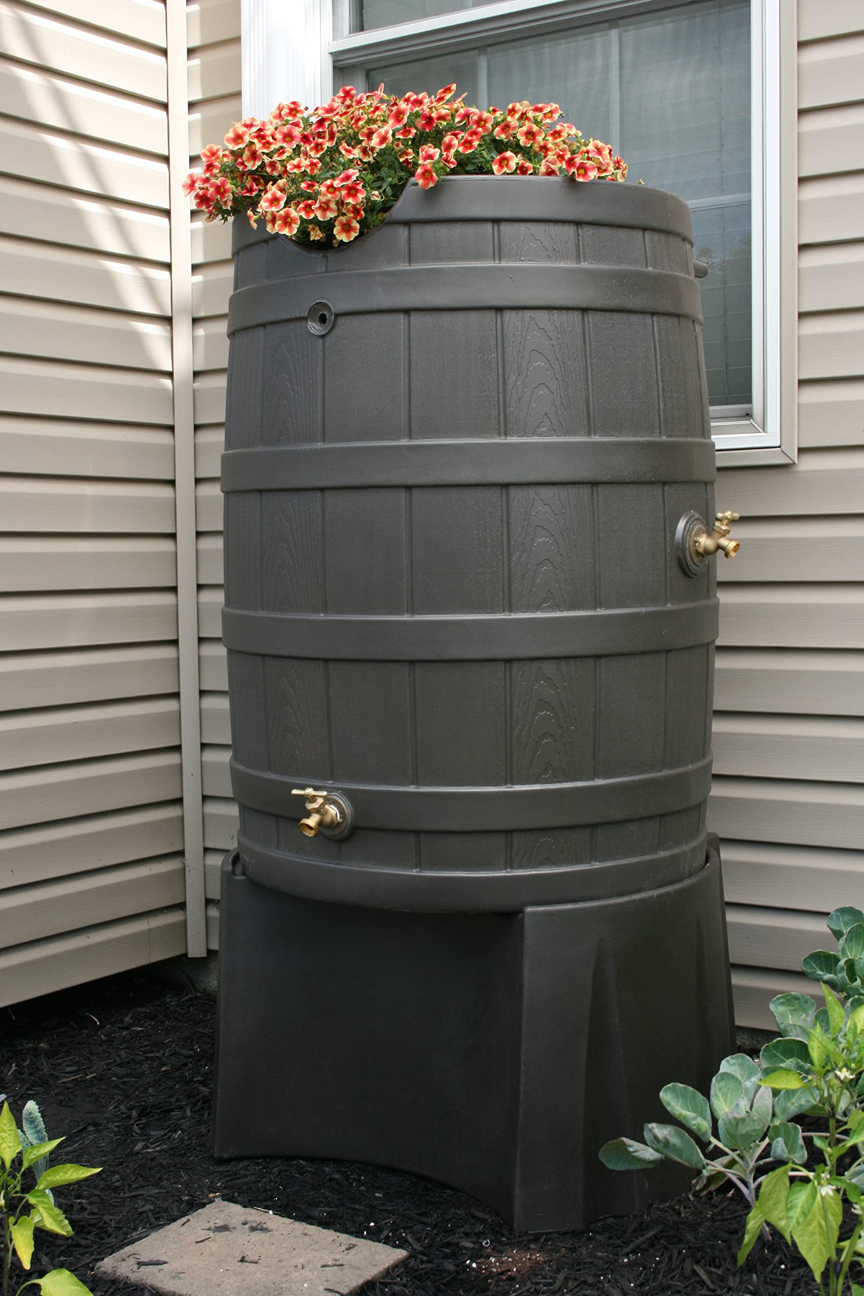 - Adds curb appeal to exposed rain barrels